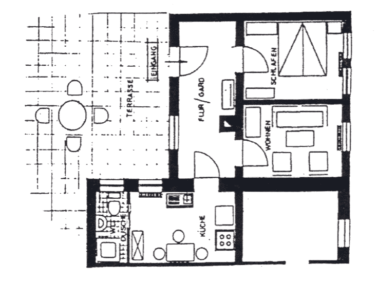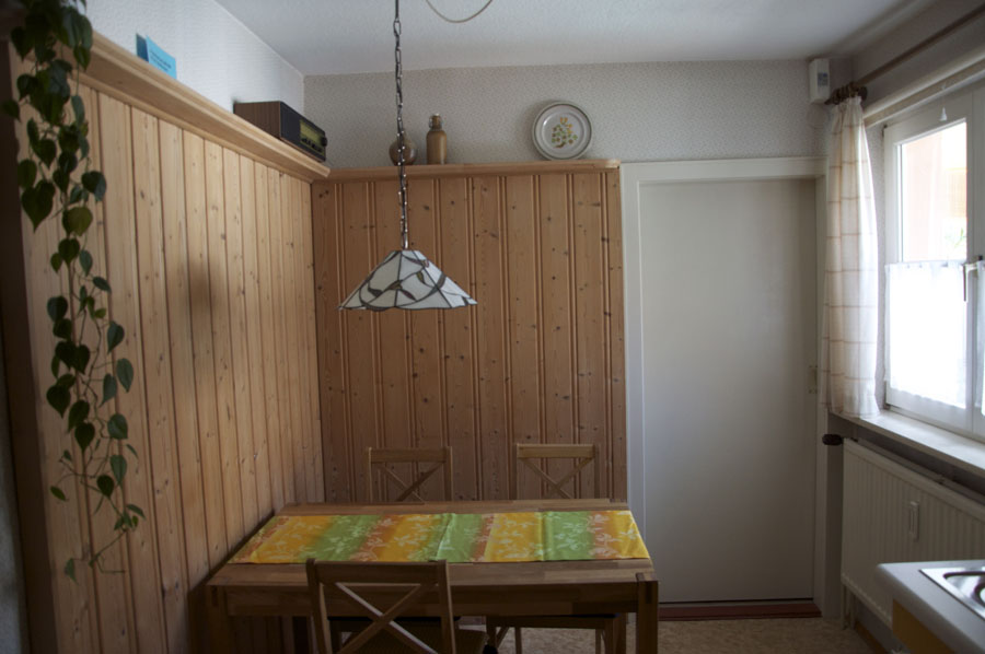 In unserer gemütlichen Ferienwohnung. Die Wohnung ist ca. 45 qm groß, verfügt über ein Schlafzimmer, ein Wohnzimmer mit Sat.-TV, eine komplett eingerichtete Küche mit Essecke, sowie ein Badezimmer (Dusche/WC).